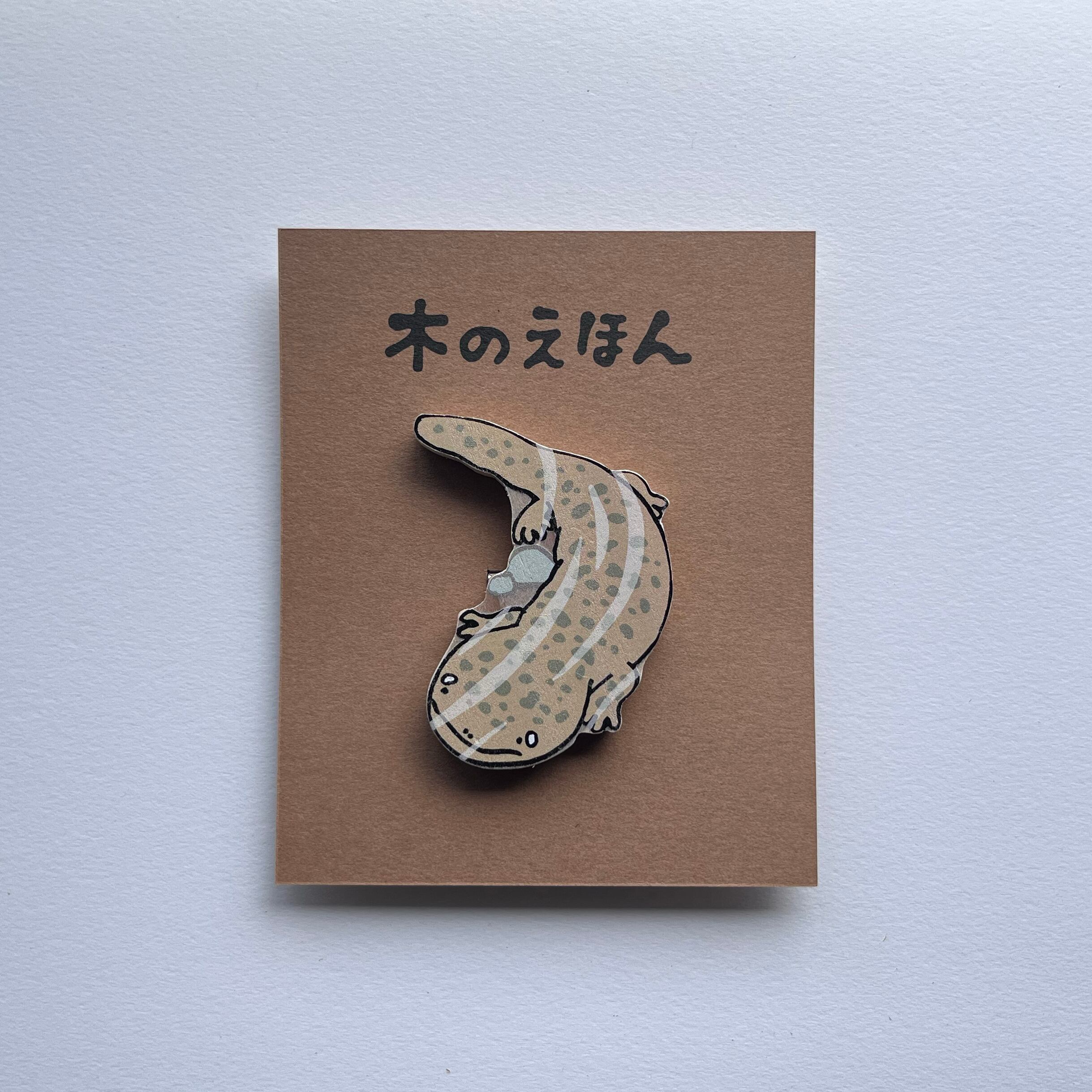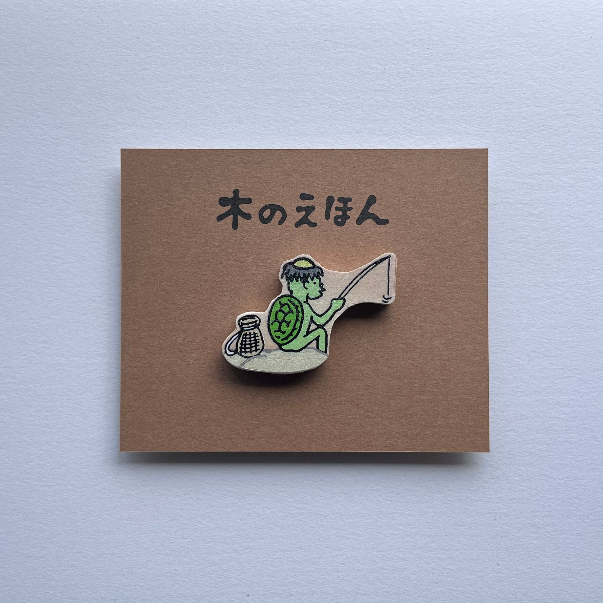 本品は「木のえほん」の製作過程でどうしても出てしまう、印刷ミスや加工ミスの材料をリサイクルし、新たに産まれたピンズ&バッジです。木のえほんの製作もしている「ねっこ作業所(就労継続支援B型事業所)」の利用者の皆さんが、1個1個、糸鋸による手加工で製作しています。